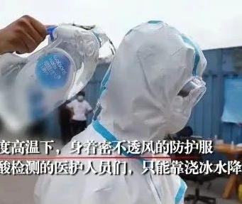 6月以來,北京市接連爆發(fā)新冠肺炎確診病例,各個社區(qū)的檢測防控工作高度緊張,奮戰(zhàn)在抗疫一線的醫(yī)護人員穿著厚重的防護服,在戶外烈日下連續(xù)做著核酸檢測工作。高溫加上高強度的工作很是難熬,但是檢測工作不能耽誤,更是有人用腳踩冰塊,冰水澆頭來進行降溫,讓人看了很是心疼。