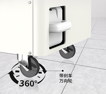 機器采用了帶有剎車的萬向輪設計,方便移動到任意空間角落進行使用。